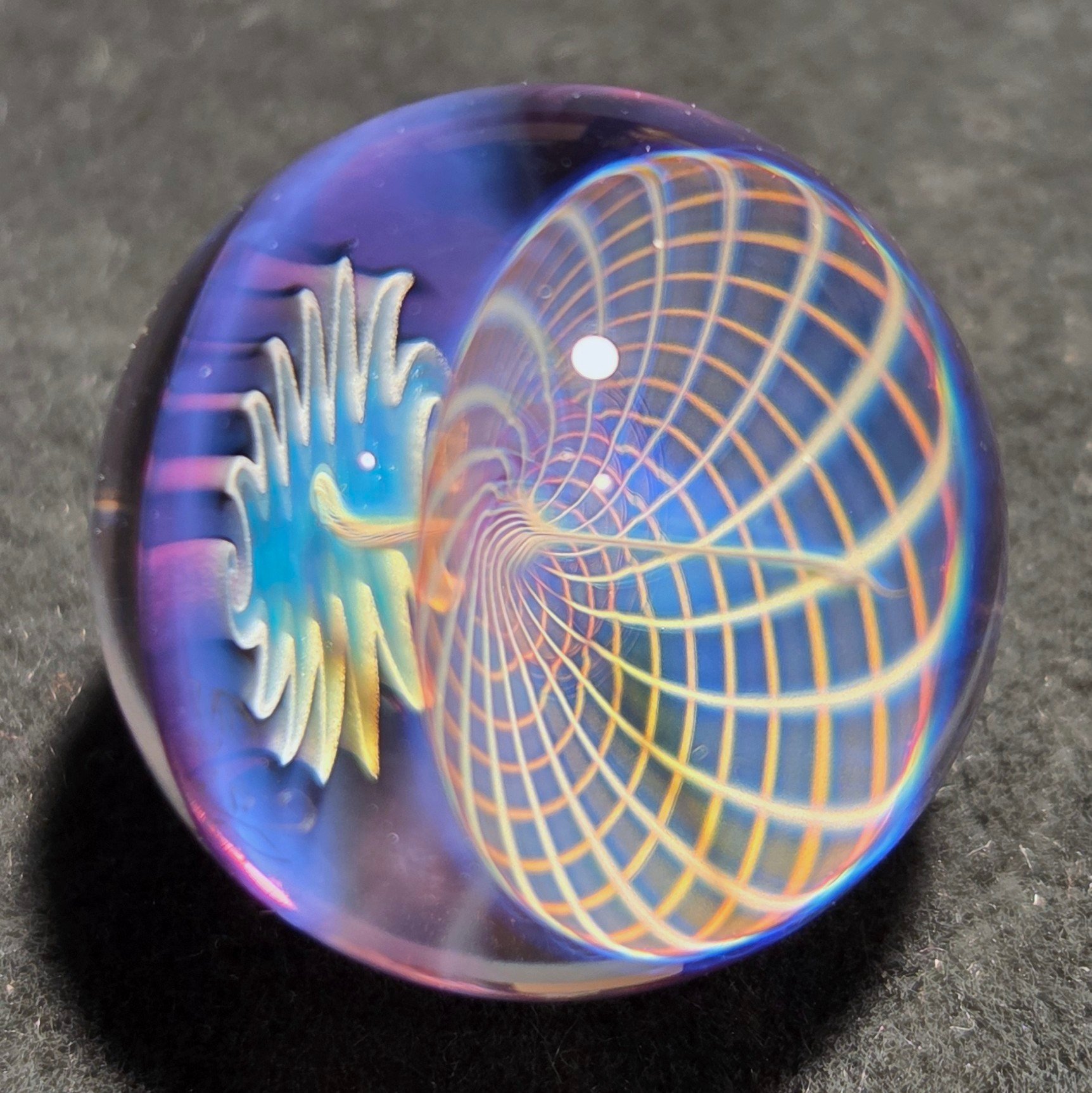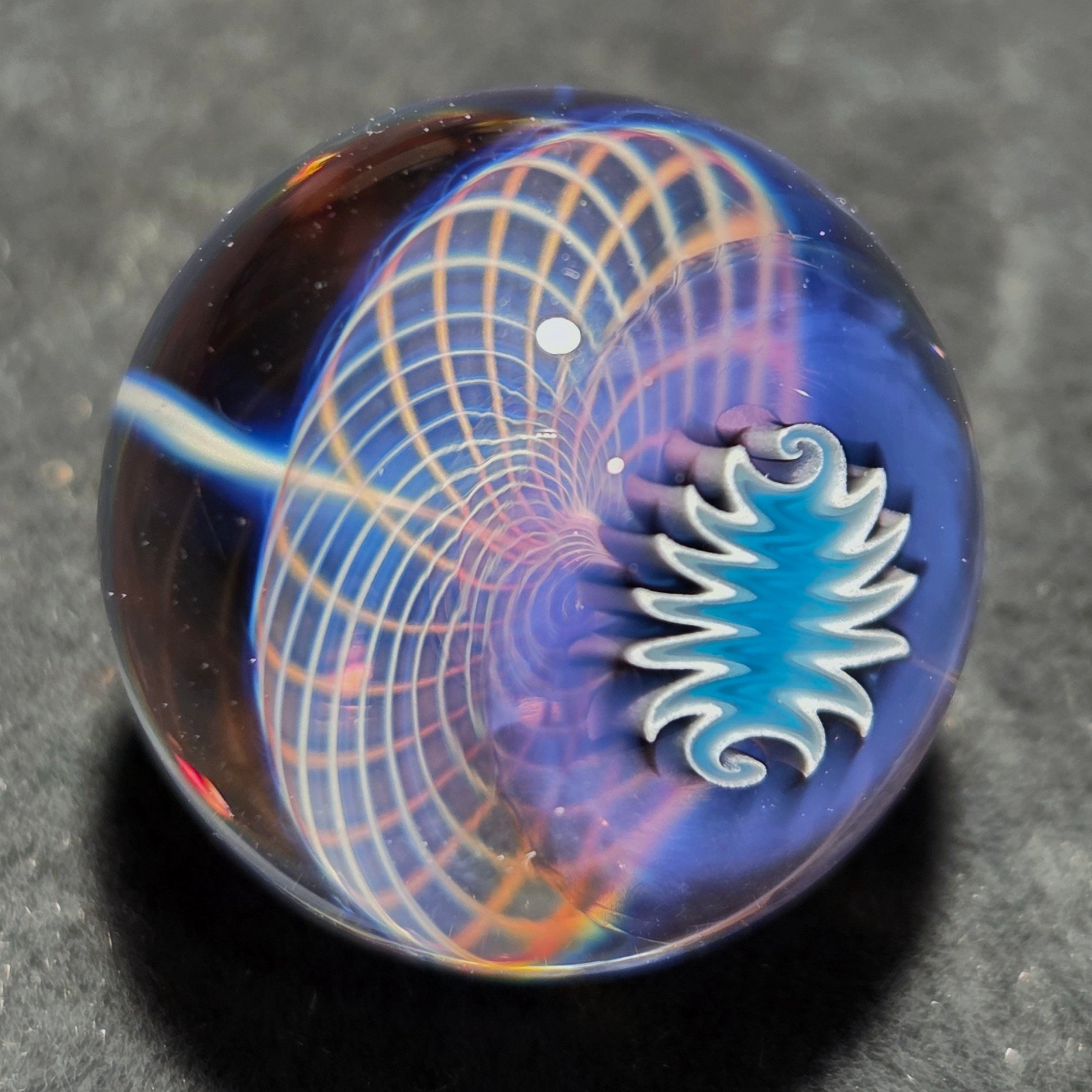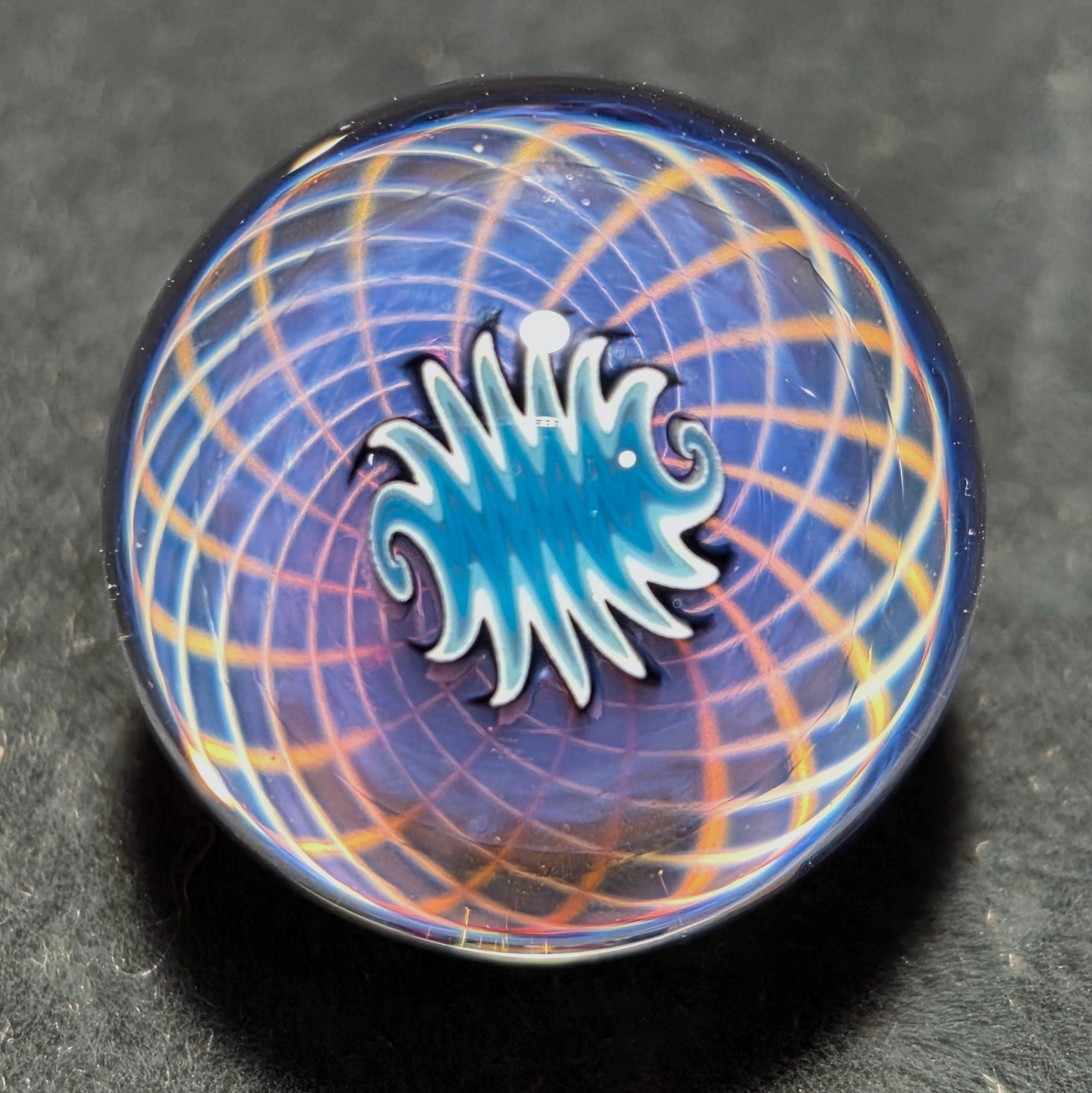 14mm collab marble w Eusheen Goines. Signed "Eush, M. Gong 9.2025". Comes w a wood stand pouch, and stickers.